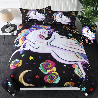 - This Lovely Moon Star Unicorn Bedding Set is a beautiful way to infuse your home decor with a dose of peace and love.