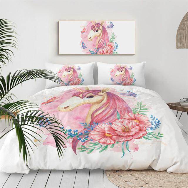 - This Unicorn Floral Girly Bedding Set is a beautiful way to infuse your home decor with a dose of peace and love.