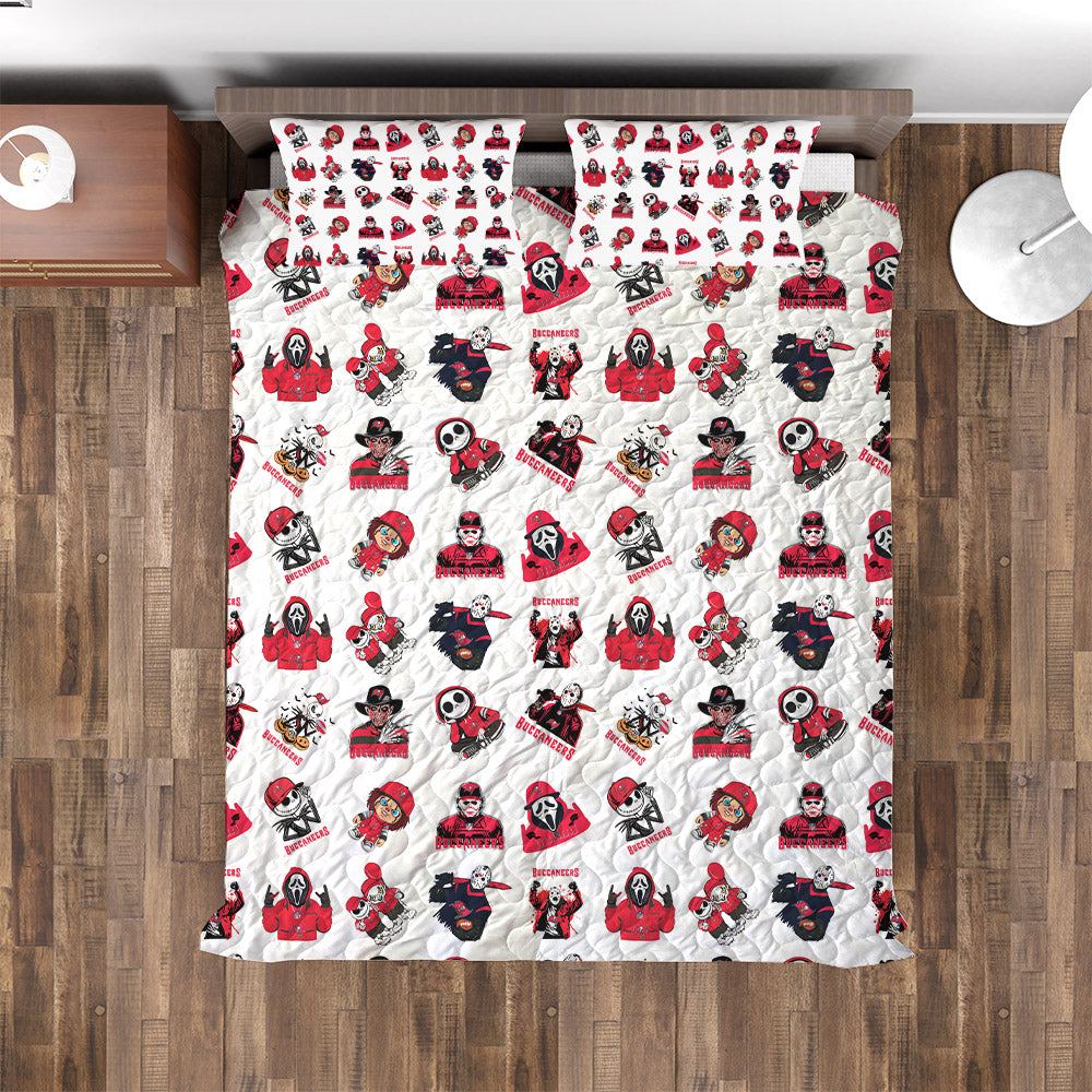 The Tampa Bay Buccaneers quilt is a personalized 3-piece quilt bedding set designed to bring comfort and team spirit to any sports bedroom decor. This NFL bedding set features a lightweight quilt blanket made from soft breathable cotton, ensuring year-round comfort whether used as a bedspread, light blanket, or seasonal bedspread. Perfect for Buccaneers fans, this football quilt set combines vibrant 3D printed designs with durable materials to create a custom look that enhances any room.