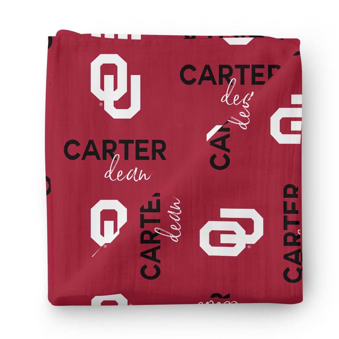Add some flair to your hospital gear or baby's game day outfit by wrapping your newborn with their own personalized swaddle blanket! This blanket will soothe any fussy baby all season long so you won't have to miss a second of the game, all while displaying their pride of your alma mater. This blanket also makes the cutest newborn pictures for the babies with the most dedicated parents, that will surely inspire their first words to be "Boomer Sooner"