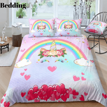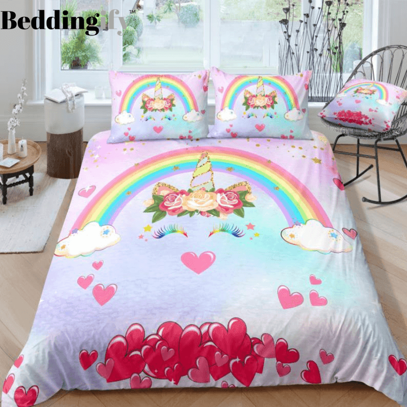 - This Falling Heart and Unicorn Lash Bedding Set is a beautiful way to infuse your home decor with a dose of peace and love.
