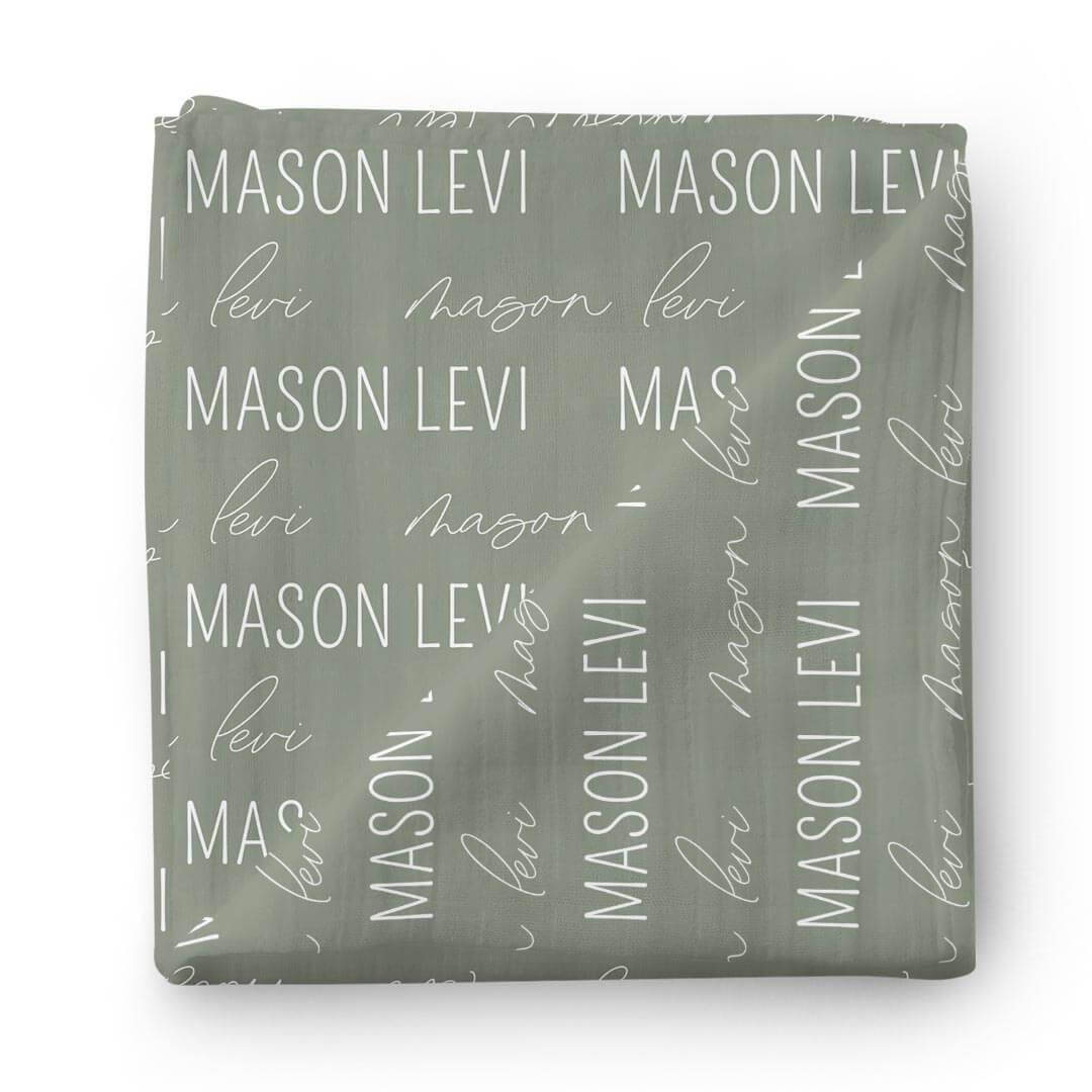 We love these butter-soft baby name swaddles! Our most popular colors are now available as personalized swaddles with the sweetest fonts we could find! Add baby's first and middle name, or just one name! It's the perfect swaddle to wrap them in at the hospital for their first picture, has the ideal amount of stretch to wrap baby, and makes the perfect baby shower gift!