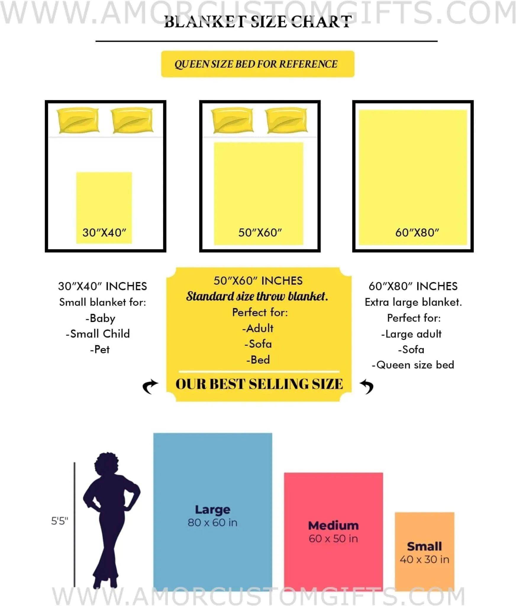 All blankets are made upon customers' wish to order and handcrafted to high-quality standards. This design also can be an awesome present for grandparent day, parent's day gift, birthday gifts, Happy New Year, Christmas gifts, Mother's Day, Father's Day, Thanksgiving, Halloween, Fall, Holidays, Birthdays, Memorial Day, Valentine's Day, or who loves blankets
